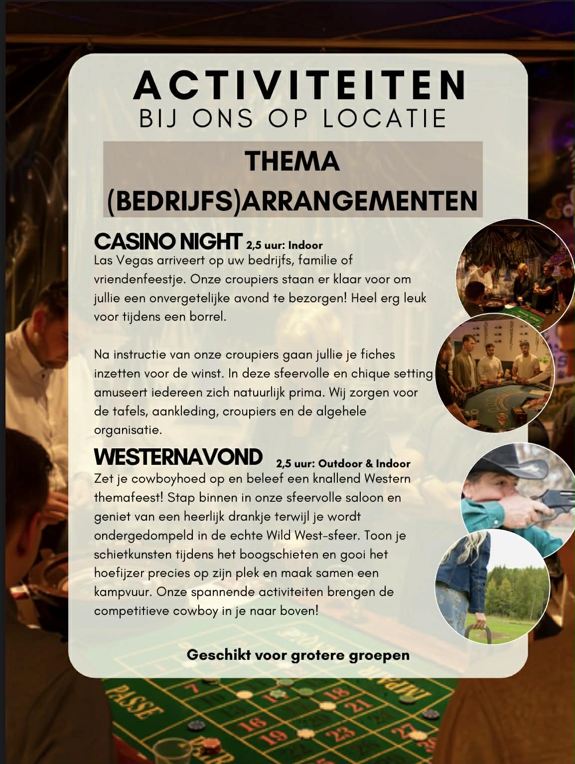 - Prijs € 24.95 p.p. (vraag naar groepskorting)