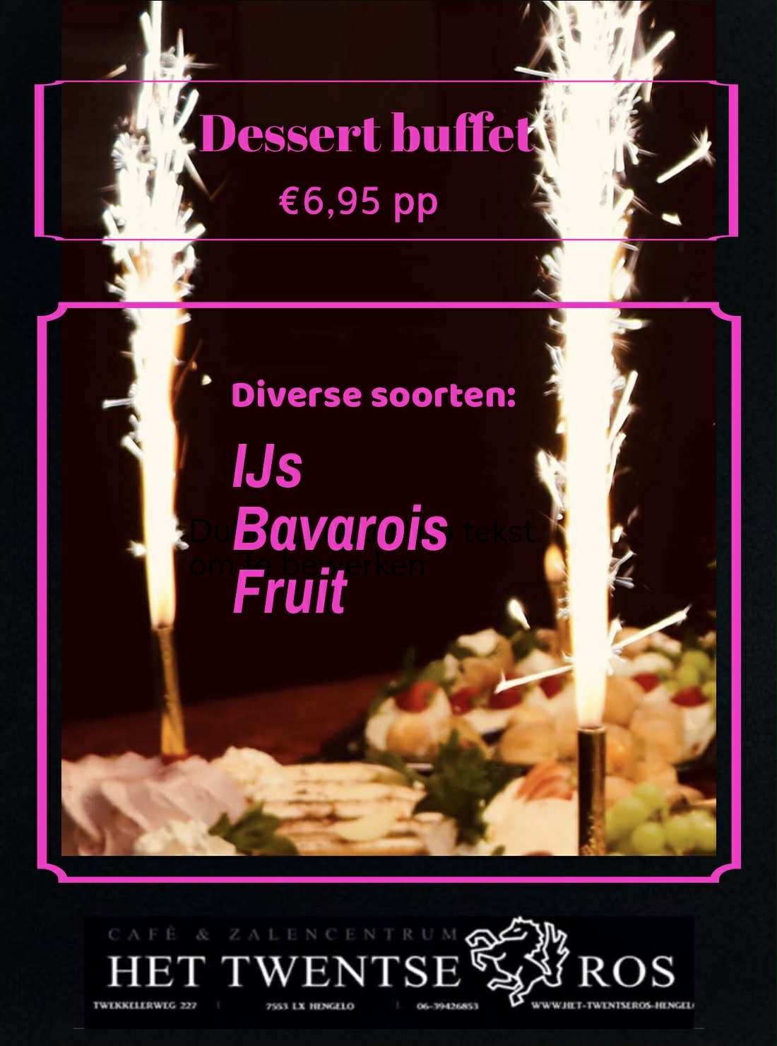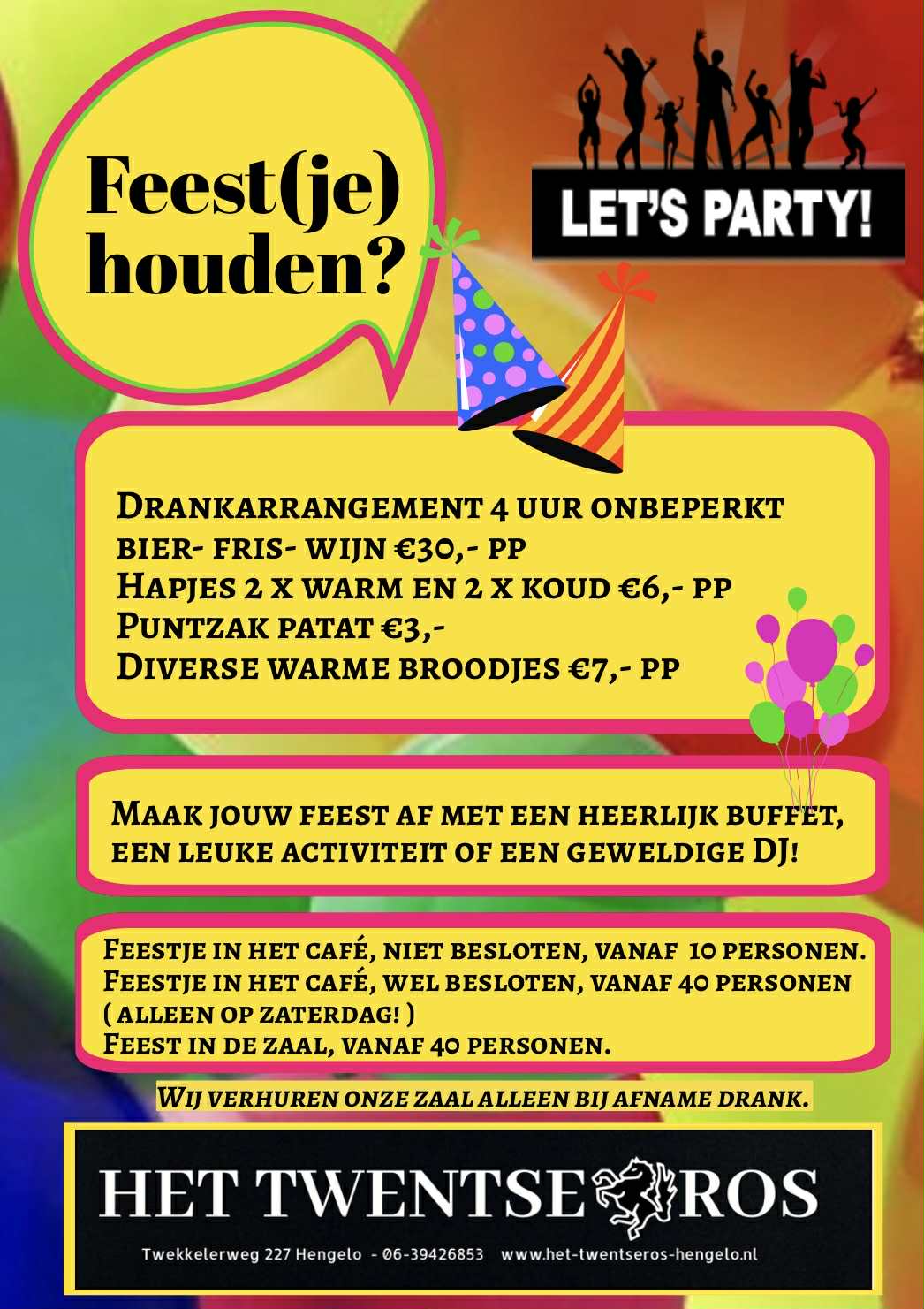 Een feestje of gelegenheid compleet maken? Wij bieden heerlijke arrangementen aan. Dit zowel bij Het Twentse Ros als op uw eigen locatie!